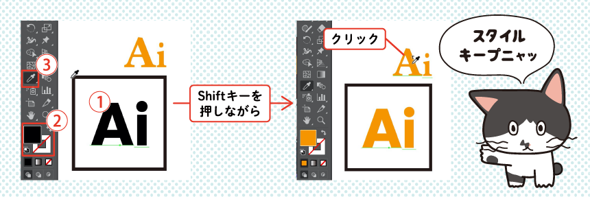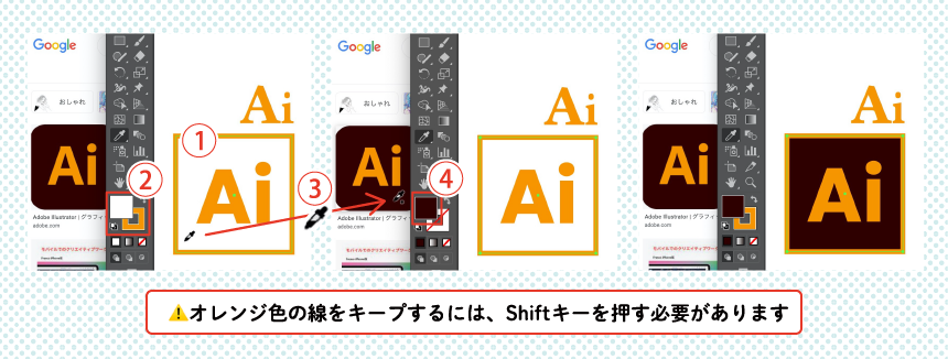 ⚠️ Shiftキーを押すことによって、線まで色情報の取得範囲を広げる仕様のようです。ですので、オブジェクトの「線」にもともと色がない&塗り色だけ拾いたいという場合は、Shiftキーを押す必要はありません。