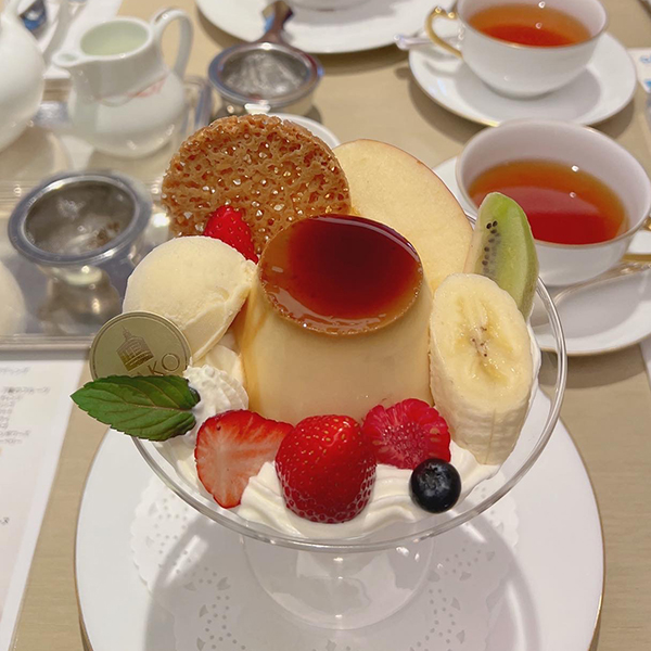 友人と和光のカフェでプリン・ア・ラ・モードをいただきながら