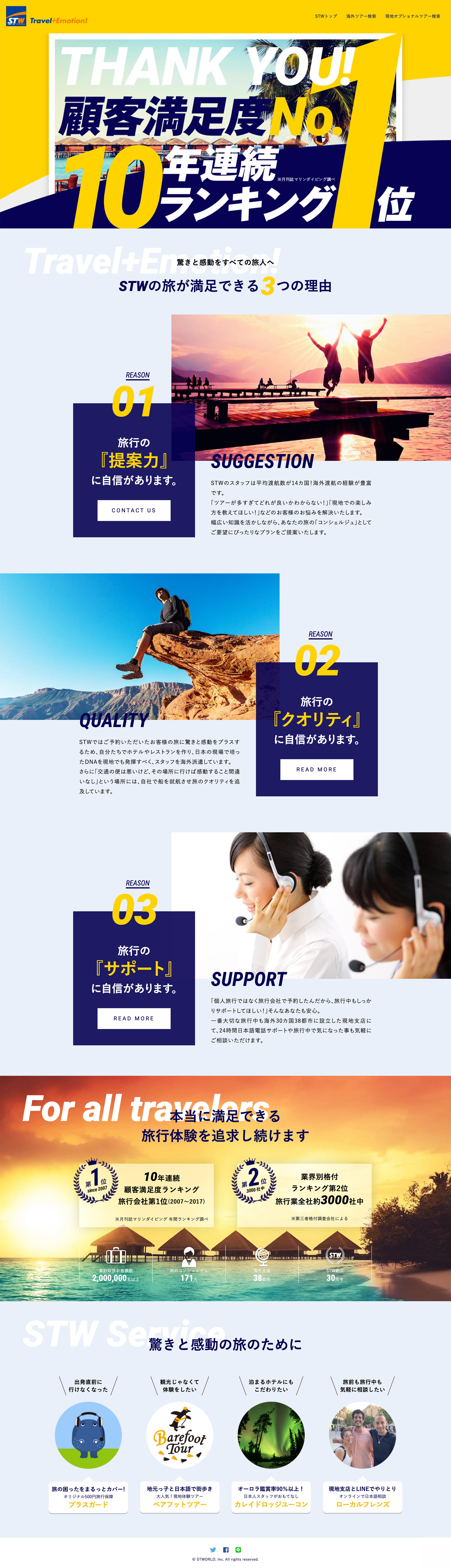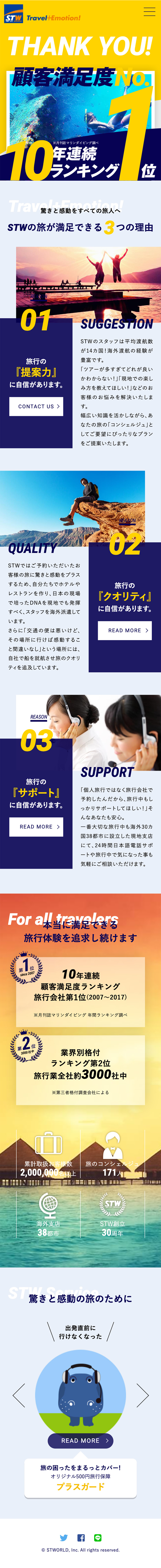 大手旅行代理店エスティーワールドのスペシャルコンテンツ「STWは顧客満足度ランキング連続第1位!」を制作いたしました。